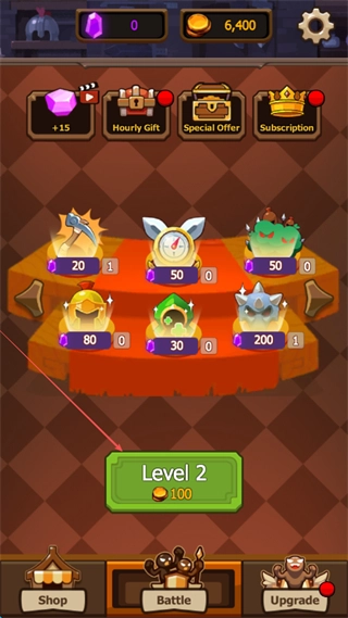 花费金币解锁Level2进入新关卡后,能在商店里升级镐头、时钟这类道具来提升战力。