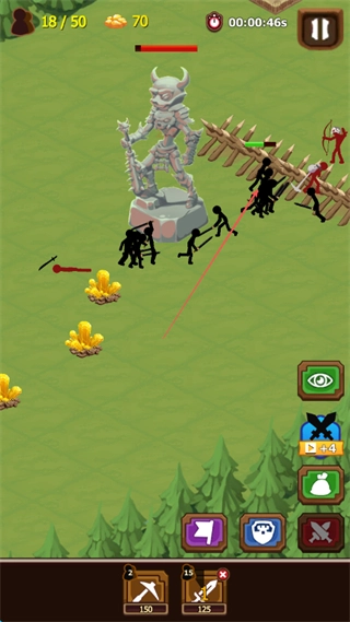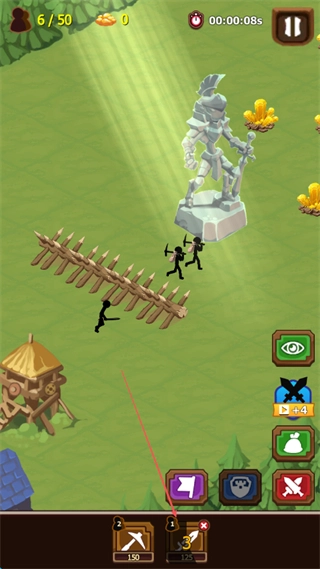 指挥火柴人士兵在战场上移动,借助栅栏这类地形,对敌方单位发起攻击,与此同时进行资源采集。