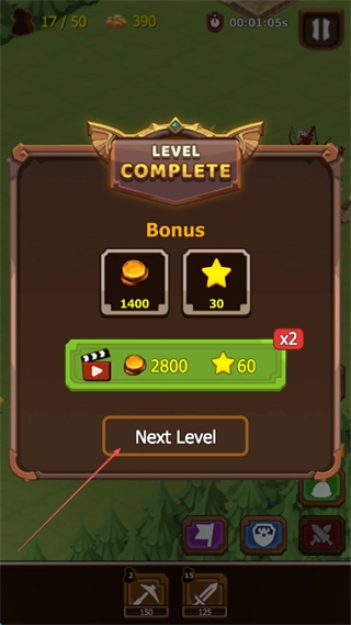 完成关卡后,你会获得金币和星星作为奖励,点击“NextLevel”按钮就能进入下一关继续挑战啦。