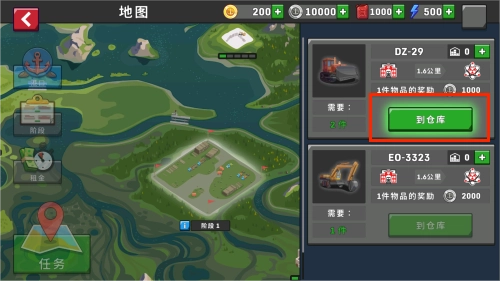 2、接着在右侧会显示待运输的货物,点击第一个“到仓库”选项。