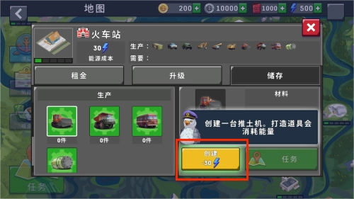 进入仓库后,你得消耗能量来制造一台推土机。