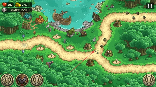 在敌人行进路线旁的空地上搭建防御塔,借助防御塔对敌人发起攻击,以此来获得金币。