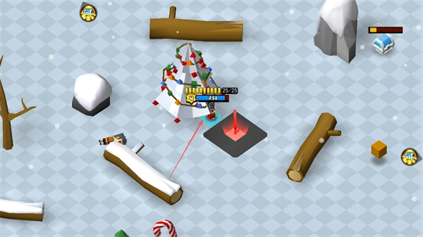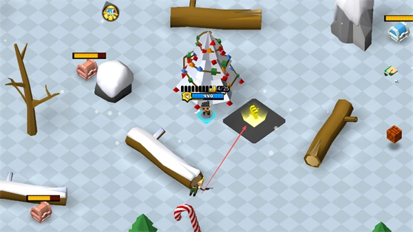 在雪地场景里,往发光的地方靠近去收集金币,攒够资源,让自己的战力变得更强。