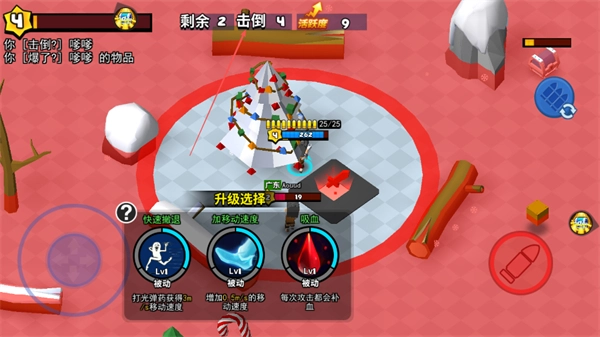 战斗时可挑选快速撤退、位移连射、吸血这类升级技能,以此提升战斗能力,来对付剩下的敌人。