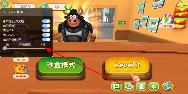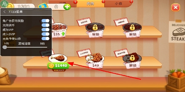 开启菜单获取、和VIP权限,可获得丰富游戏资源,提升餐厅经营便利性,助力推进进程。
