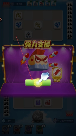 当强力支援被触发时,点击即可获取核弹之类的强力道具,以此提升战斗能力。