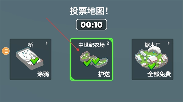 进入战场后,所有玩家需要通过投票来决定要游玩的地图与玩法模式。