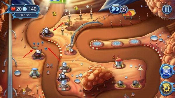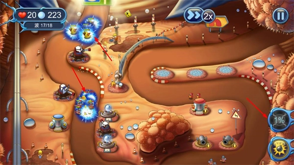 当敌人一波波袭来时,借助防御塔的爆炸、电攻等攻击效果,能对敌人造成巨额伤害。