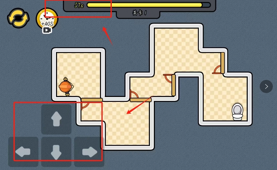 2、在规定时间内控制前进方向找到洗漱间即可。