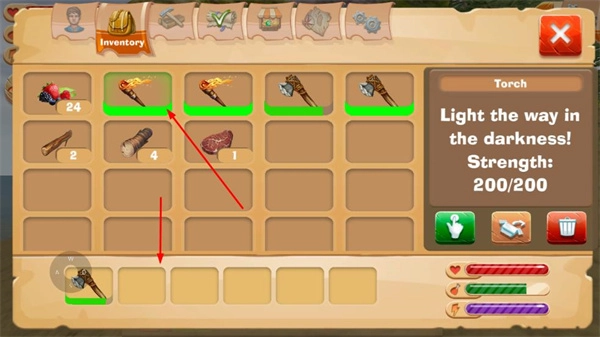整理好物品栏,借助火把驱散黑暗带来光亮,为探索保驾护航,开启这段探索的旅程。