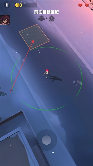 抵达目标区域后,做好应对僵尸的准备,通过虚拟摇杆来操控角色的移动。