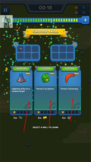 升级时选择技能,增强攻击能力和战斗策略。