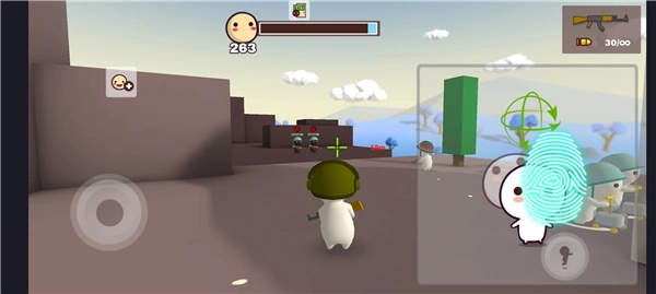 点击指纹图标所在的位置,长按并控制好方向,枪支就会自动射击敌人。
