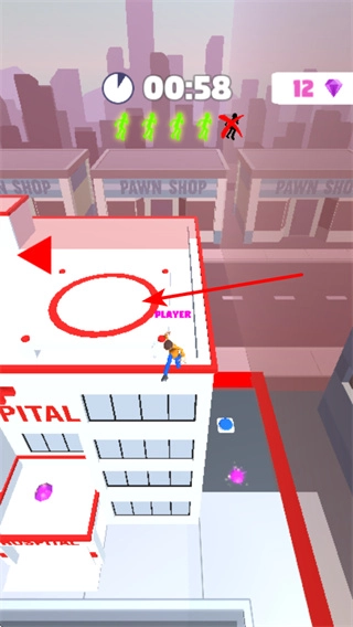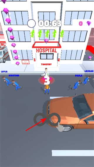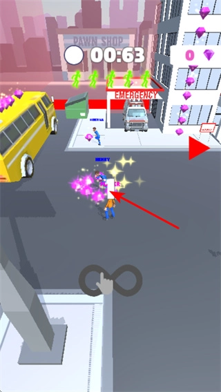 掌握移动操作,借助下方的操控按钮,指挥角色在城市街道上移动,避开车辆障碍物,开启挑战。