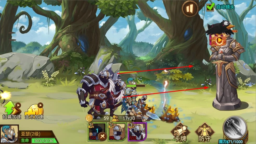 操控英雄与培养的兵种向敌方单位发起进攻,消灭敌人以推进关卡,进而获取资源,这些资源可用于抽卡、解锁成就以及兵种的养成。
