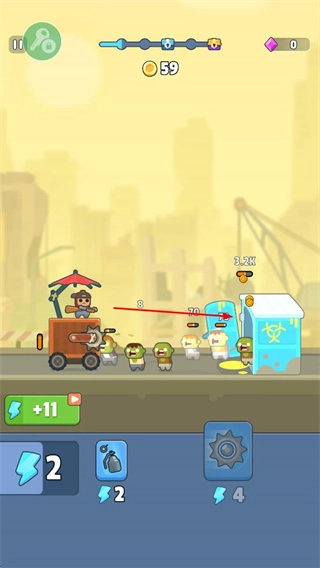 在战斗过程里,你可以运用道具对僵尸形成范围性伤害,以此来迅速清除敌人,进而得到金币奖励。