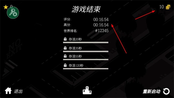 游戏结束后,你可以查看得分、高分记录以及世界排名,从而了解自己的游戏表现。