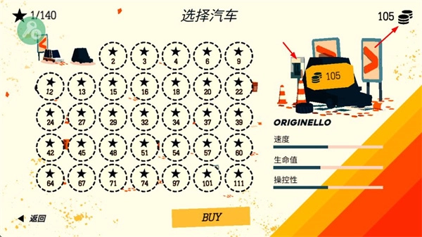 可以用金币解锁各类汽车,还能提升汽车的速度、生命值、操控性等属性。