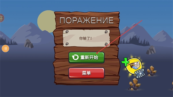 4、对局显示你输了后,点击界面中的重新开】按钮可再次开启该局对战,尝试获取胜利。
