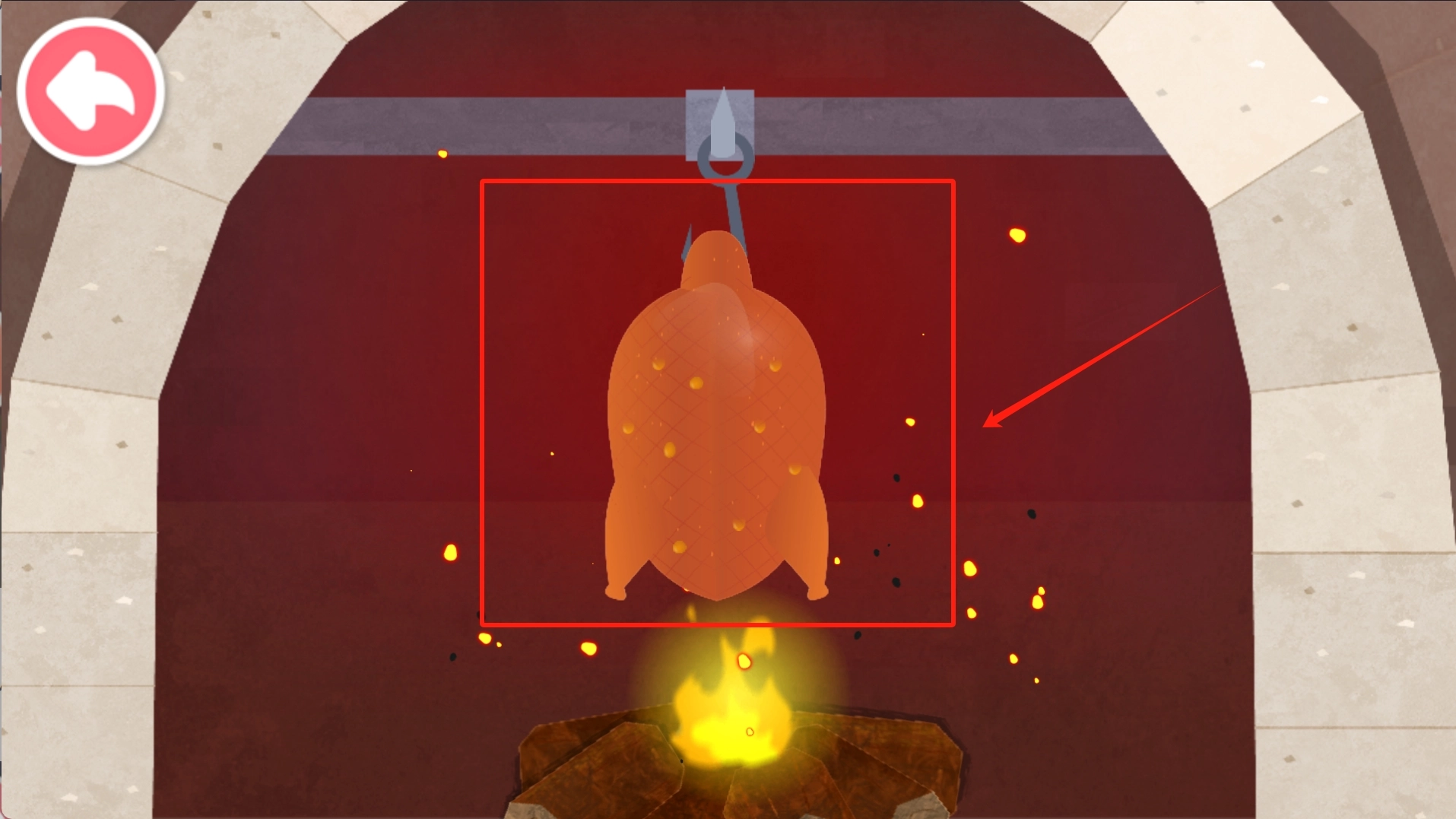 1、薄饼卷烤鸭,尝地道风味。宝宝将烤鸭挂于壁炉,均匀涂抹上糖水。
