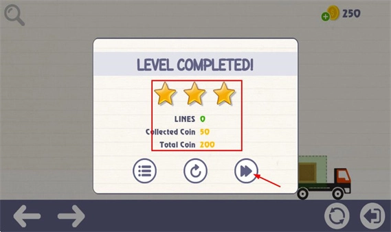 4、完成当前关卡后,在弹出的界面中找到带有双箭头标识的按钮,点击此按钮即可进入下一个关卡。