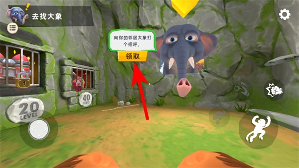 4、按箭头指引继续操控角色前进,靠近任务目标的区域,完成去找大象的任务要求推进关卡。