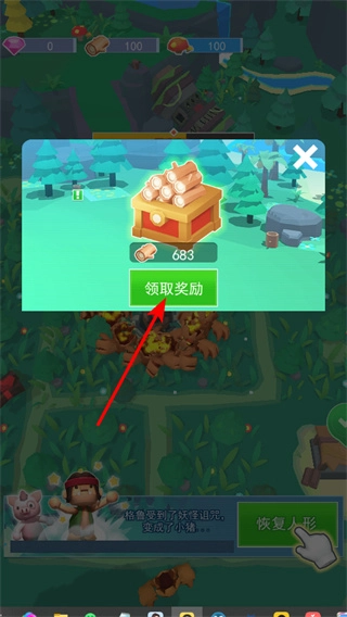 点击领取奖励,就能获得木材资源啦,它可是游戏里关键的建设资源,能用来给建筑升级和解锁新功能哦。