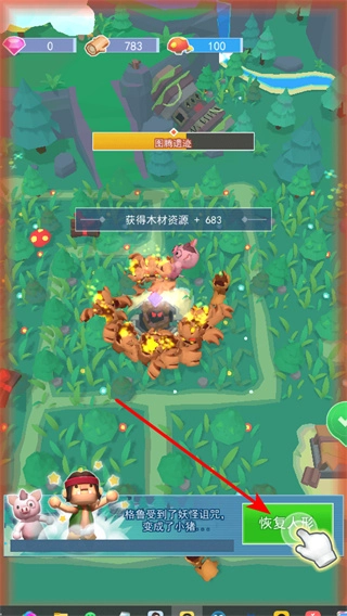 点击“恢复人形”按钮,就能解除角色的小猪形态,使其回到正常状态,以便继续开展任务与探索。