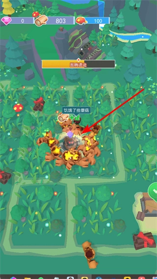 在场景里搜寻并收集木材资源,把它们积攒起来,这样就能满足建设与升级的需要,为后续发展提供助力。