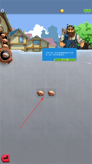 按照提示把矿石熔合起来,制造装备零件,点击下一步就能继续了。