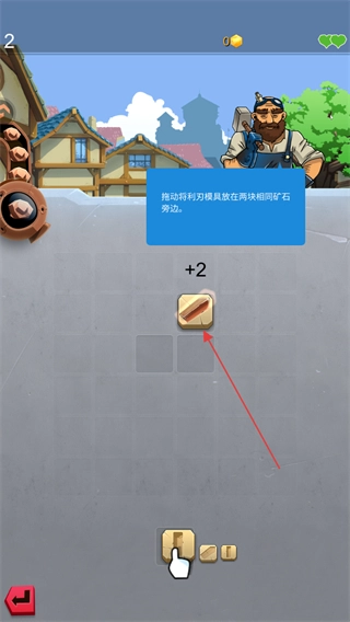 把利刃模具拖过去,放在两块一样的矿石旁边,就能制作道具了。