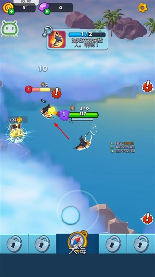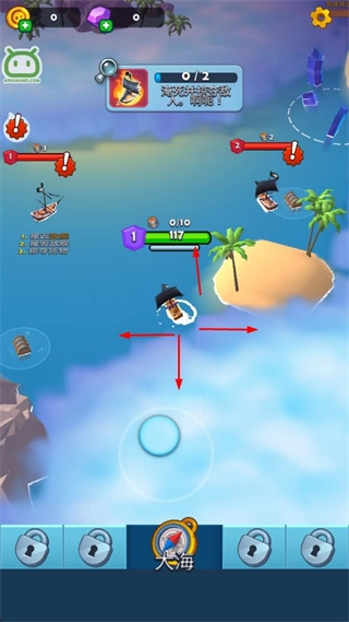 当遭遇敌方船只时,操控我方战船逼近并展开攻击,成功击溃敌人后,不仅能获得金币等各类奖励,还能推动任务进程不断向前。