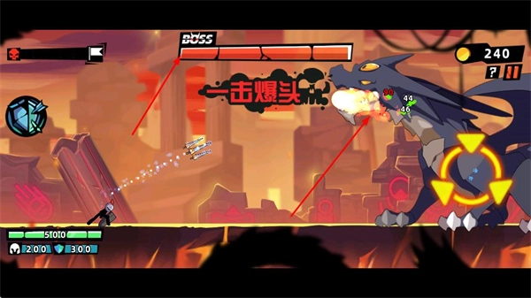 在面对BOSS时,抓住合适的时机发动攻击,有时甚至能打出一击爆头这样的强力伤害,成功消灭BOSS后即可完成该关卡的挑战。