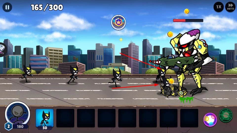 多元英雄养成机制:这里有着众多特性各不相同的火柴人英雄,每一位都具备专属技能与成长轨迹。玩家能够借助招募、训练来增强他们的战斗力,并且依据战场的实际需求去搭配阵容,从而构建出独属于自己的、难以被击败的队伍。