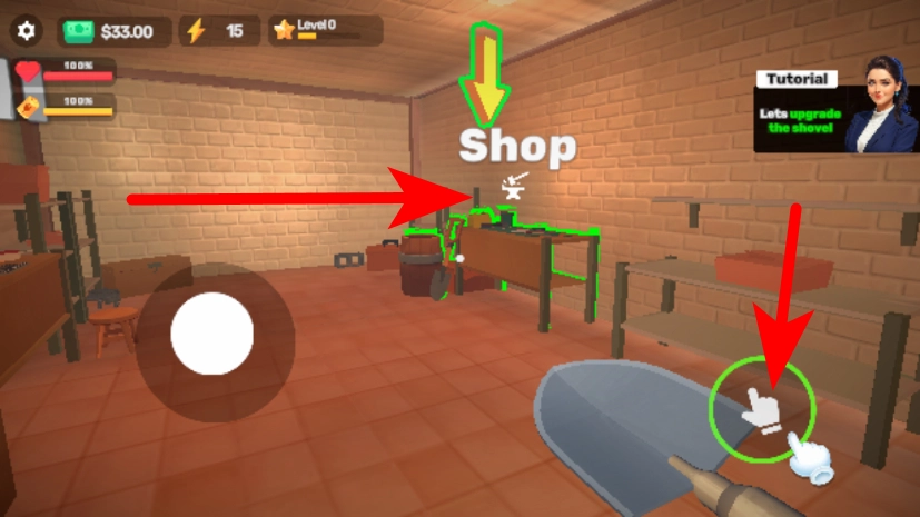 3、进入店铺界面,点击对应选项,升级手中的铲子。