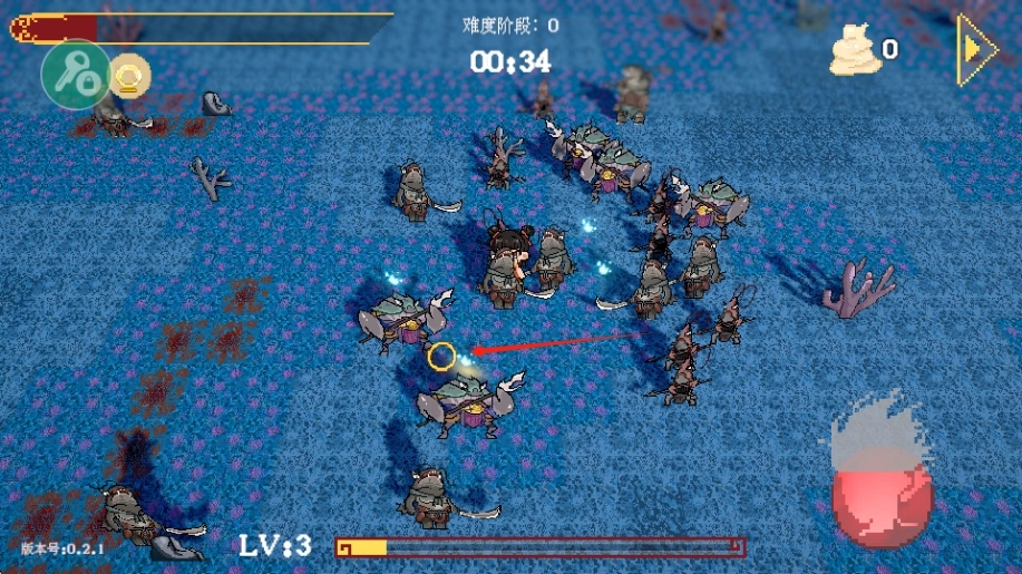 把攻击目标锁定在箭头所指的敌人身上,发起攻击能迅速歼灭敌人,同时积累经验值来让角色等级得到提升。