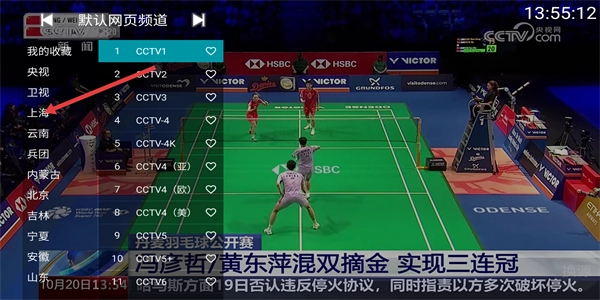 2、点击频道切换入口后,会弹出包含多个频道的列表,在列表找到上海等地方频道选项,点击该选项,切换到对应的地方频道。