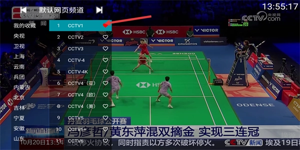 3、切换到地方频道后,在频道列表里找到CCTV1频道,点击该频道,切换到央视综合频道,此时可观看该频道的节目。