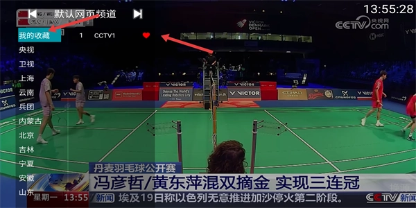 4、在观看CCTV1频道节目时,找到我的收藏相关功能区域,点击该区域,可将该频道添加到收藏列表,方便后续快速找到。