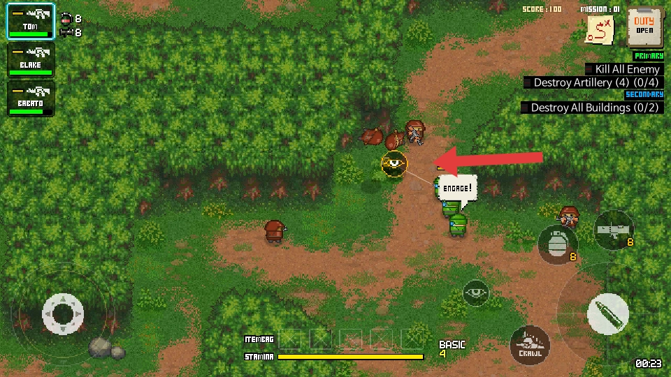 在丛林环境里,碰上敌方士兵,就主动展开攻击;通过击败敌人来累积分数,以此推动任务进程,同时要留意借助掩体保障自身的安全。