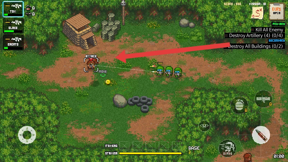 抵达炮兵单位的部署区域后,立即展开攻击行动,先摧毁炮兵单位,再对周边建筑实施打击,以此达成主要任务目标与次要任务目标,最终圆满完成此次任务。