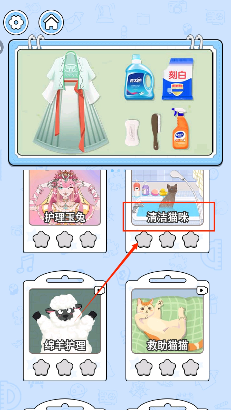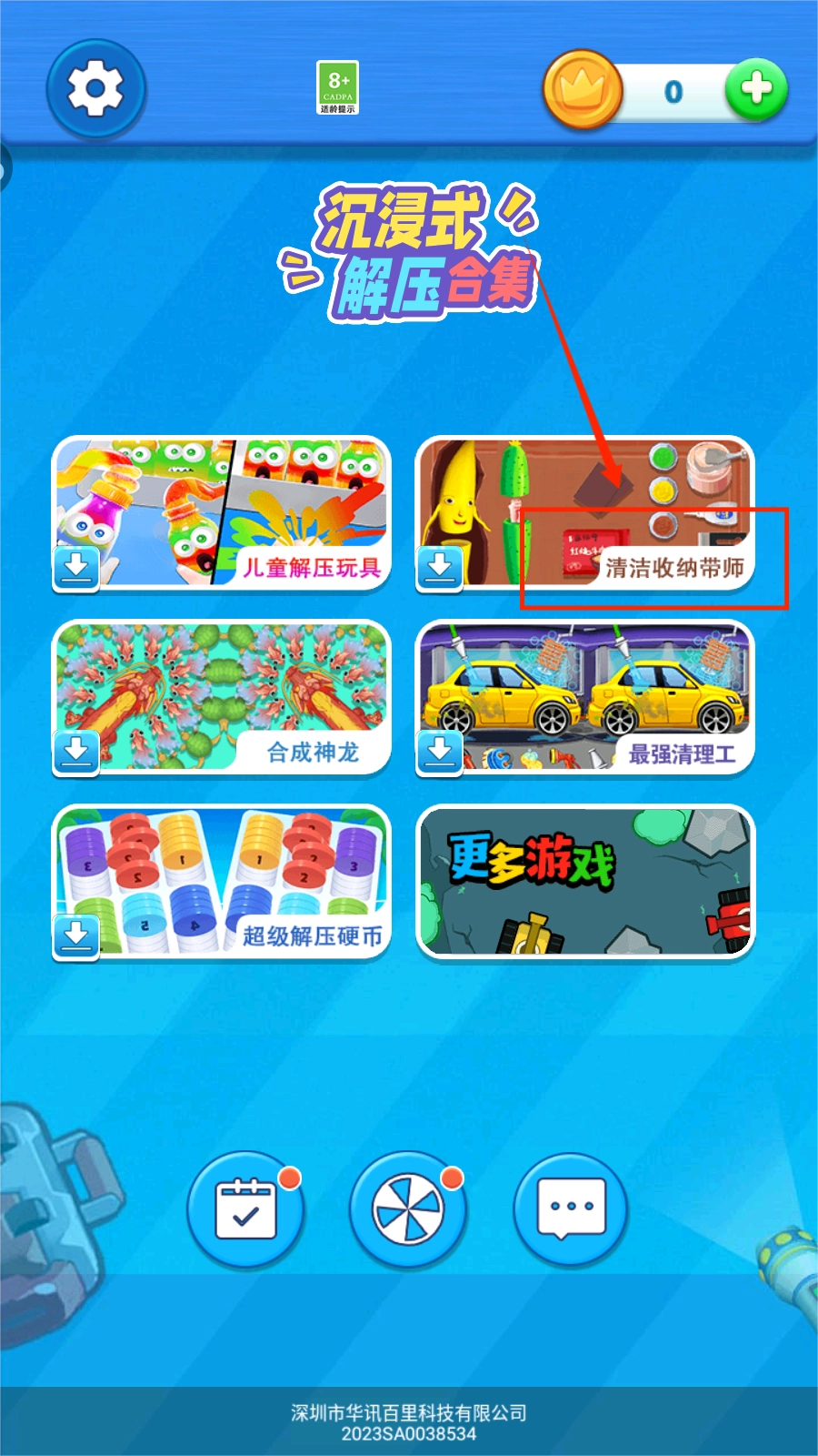 进入界面后,可选择多种游戏,例如清洁收纳类游戏。