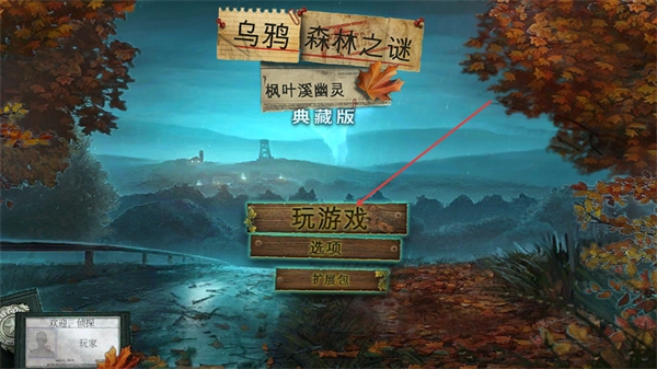 1、进入乌鸦森林之谜的启动界面后,点击玩游戏按钮可开启解谜流程;选项可调整游戏设置,根据需求选择对应功能即可推进。