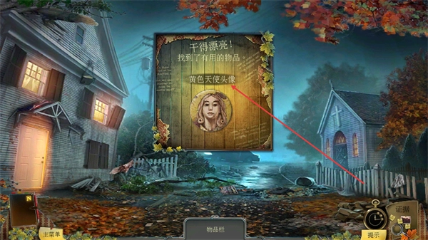 4、成功找到物品后,界面会弹出干得漂亮,找到了有用的物品。黄色天使头像的反馈,收集的物品会存入下方物品栏,这些物品将用于后续的解谜环节。