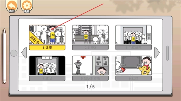 1、在关卡选择界面,点击处于进行中状态的让座关卡卡片,即可进入该关卡的互动场景,开启对应的情商挑战流程。