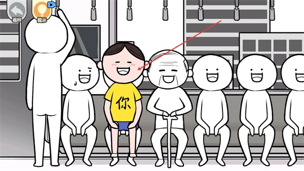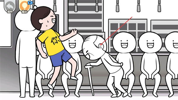 2、进入让座关卡场景后,观察到老人需就座的需求,操作对应交互区域,协助老人向座位方向移动,推进该关卡的互动步骤。