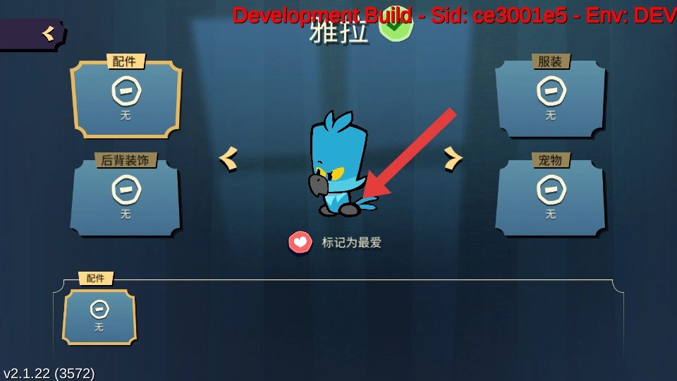 进入角色详情页面后,你可以在该页面点击配件服装、后背装饰、宠物等分类按钮,进入对应的装扮挑选界面,为雅拉搭配各种装饰。