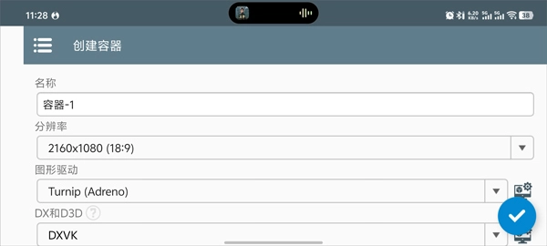 选择屏幕分辨率,并设置显存大小(配置较低的手机,其显存和分辨率需设置得小一些)。