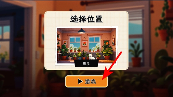 进入游戏后,点击红色箭头所指的游戏按钮,选择屋子场景以进入核心玩法环节,进而开启该场景下的关键操作步骤。