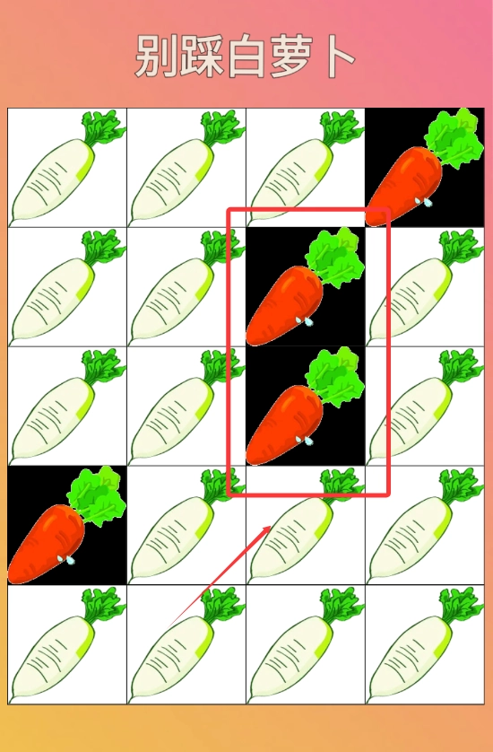 2,可以看出黑色萝卜的位置在不断变化,按照它的变化点击对应的黑色萝卜就可以了。